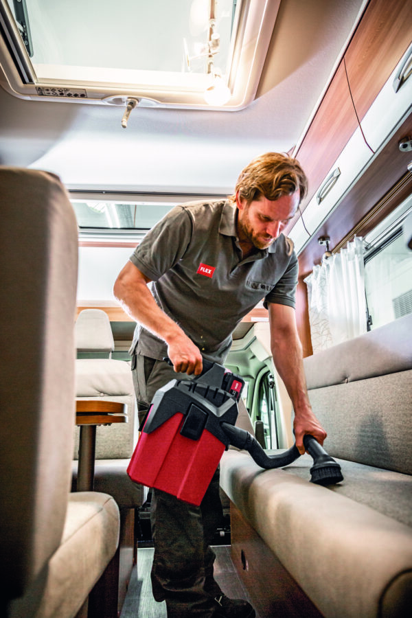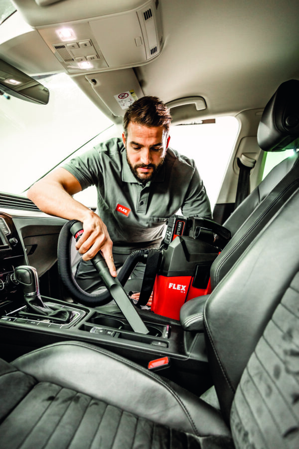 Powerful vacuum cleaner for professional use in final assembly, automotive cleaning etc. FLEX power tools can be connected with ease using the FLEX clip system for extraction work - Optimised for cleaning work in offices, storage rooms, workshops and vehicles