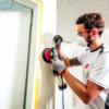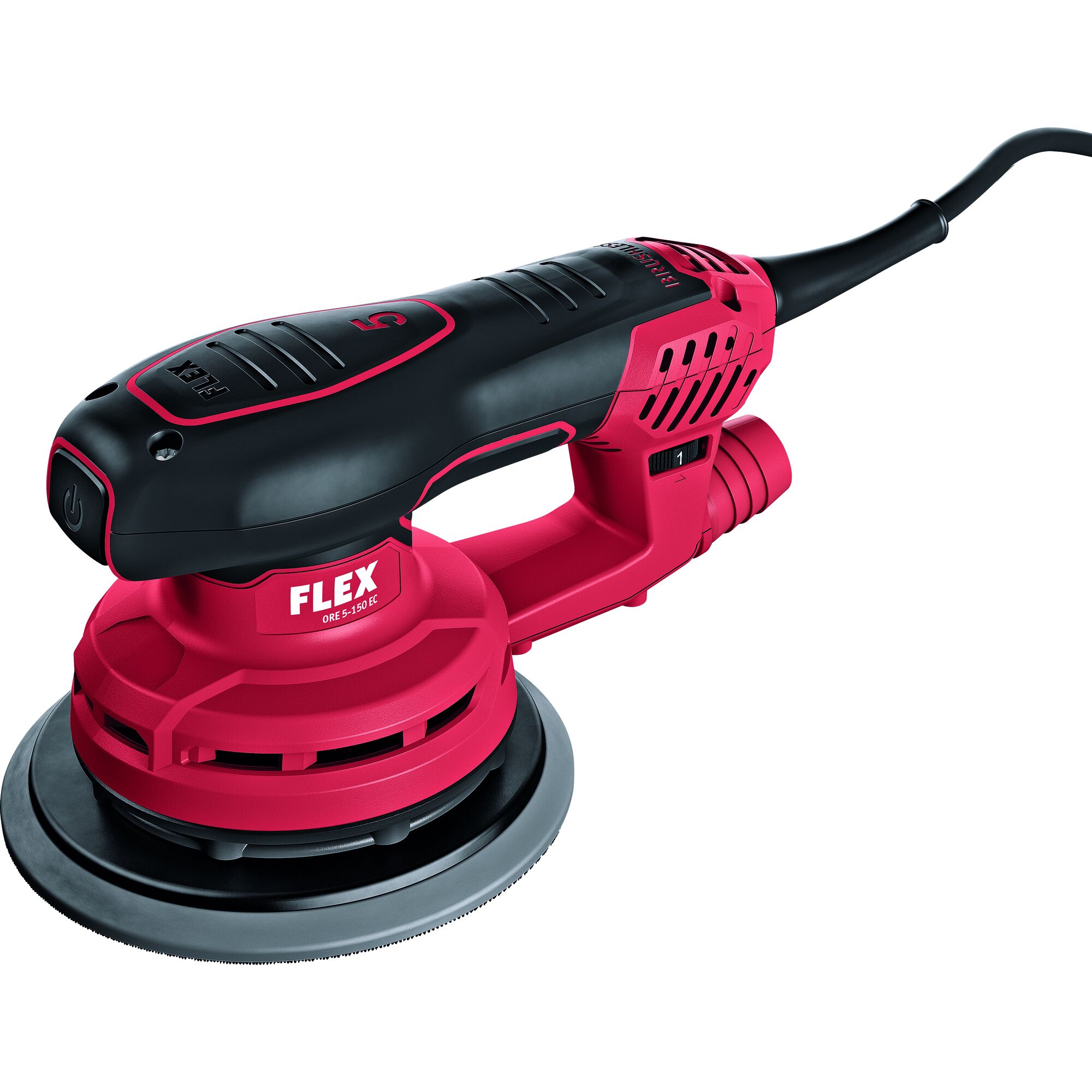 - The FLEX ORE 5-150 EC is a 400 W, 5 mm stroke random orbital sander known for its superior ergonomics and durability.Key features include a brushless motor for long life and efficiency, and a special balancing system that ensures extremely low vibration for comfortable, joint-friendly work. It offers variable speed control (4,000-10,000 rpm) for material-specific sanding.Its professional sanding features include an active disc brake to prevent swirl marks and a highly effective integrated PES microfilter dust extraction system. The 150 mm hook-and-loop pad is compatible with all standard abrasives and the tool’s lightweight design (1.4 kg) makes it suitable for overhead tasks.