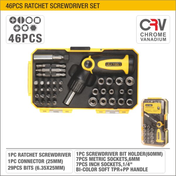 UYUSTOOLS 46PCS RATCHET SCREWDRIVER SET