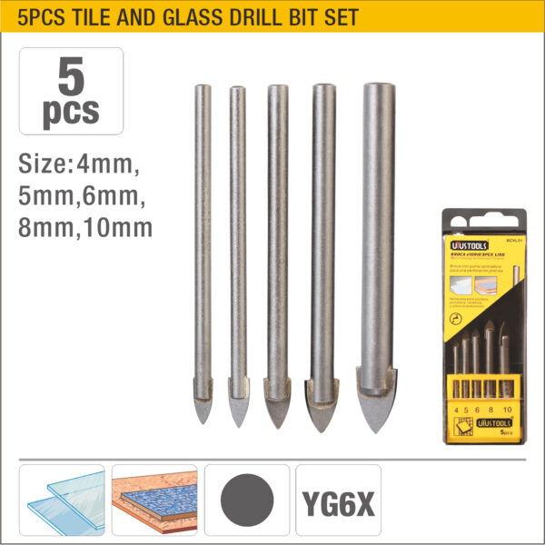 UYUSTOOLS 5PCS GLASS DRILL SET -STRAIGHT HANDLE