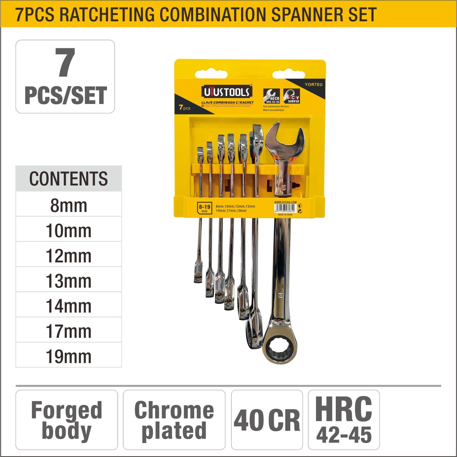 “UYUSTOOLS 7PCS COMBINATION RATCHETING SPANNERS SET”