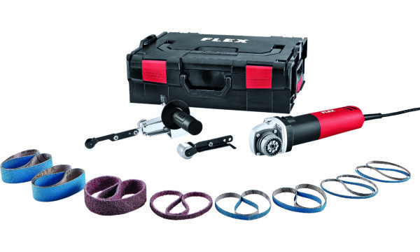 - Unique tool attachment with quick-action coupling for tool-free changing of the system attachments for burnishing, pipe belt sanding, filing