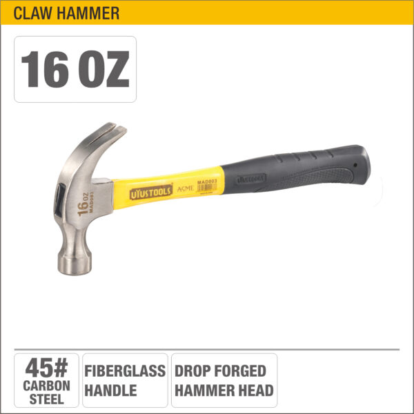 UYUSTOOLS CLAW HAMMER – FIBERGLASS HANDLE