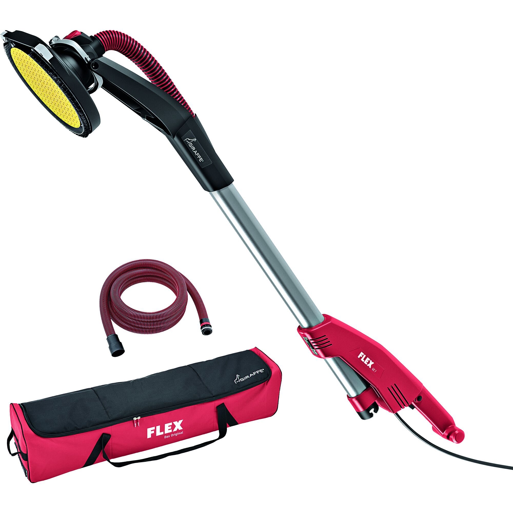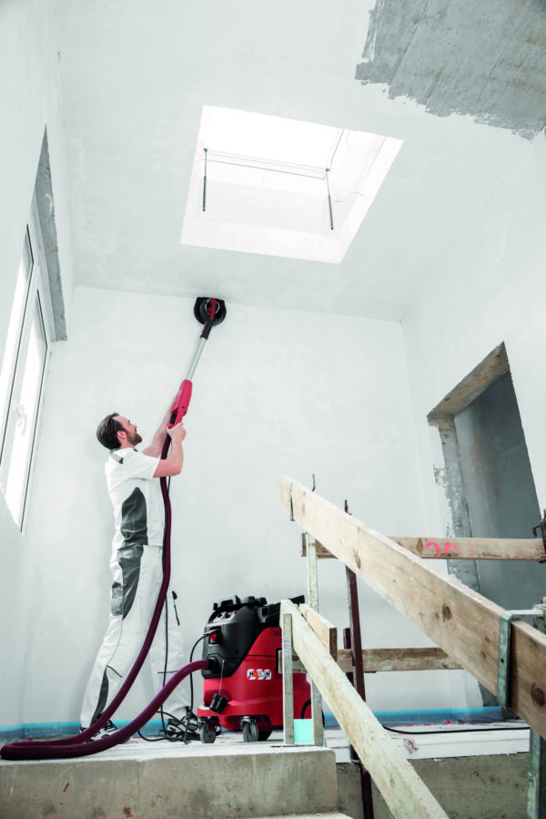 - This power tool features a quick, tool-free interchangeable head system with the included MH-R Segment Head for versatile sanding. The rotating edge segment enables smooth wall-to-wall and ceiling-edge transitions. Its electronic controls ensure constant speed, soft-start, overload protection, and adjustable speed settings for precision. Weighing only 4.2 kg, the tool offers excellent ergonomics and balance, thanks to a flexible drive shaft that reduces head weight. An efficient dust extraction system between the brush ring and pad keeps the workspace clean, with an easy clip connection for vacuums. The long-reach design (1,520 mm) allows effortless ceiling and high-wall sanding, extendable with optional accessories. The gimbal-mounted sanding head tilts up to 100°, adapting to surfaces for smooth and consistent finishes.