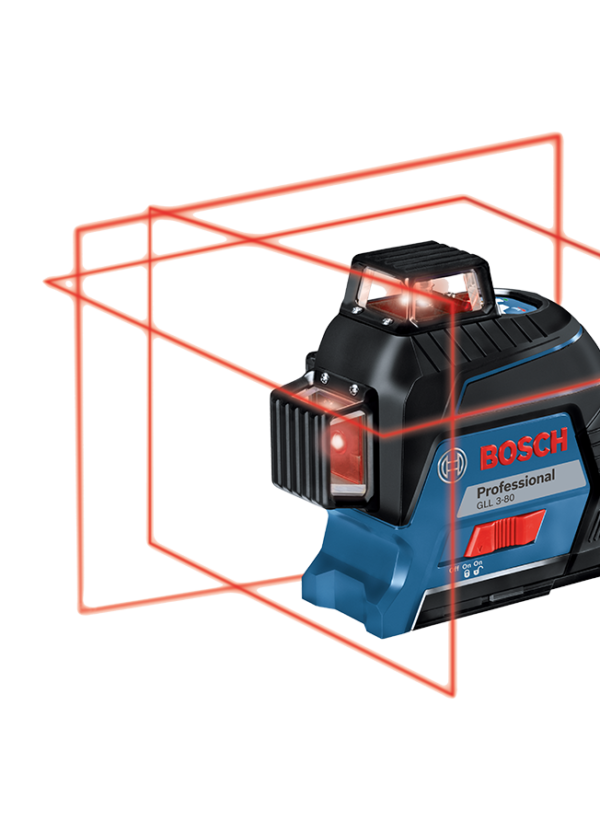 - The Bosch GLL 3‑80 Professional is a high‑visibility line laser designed to deliver full‑room alignment with ease. By projecting three 360° laser lines, it covers both horizontal and vertical planes in a single setup — perfect for tasks such as installing ceilings, laying drainage pipes, and tiling work. Its quick self‑levelling, solid accuracy, and broad operating range (especially with a receiver) make it efficient for professional use. Despite its rugged job‑site design (IP54 rating), it remains lightweight and easy to handle, and its AA‑battery operation offers flexibility when mains power isn’t available.