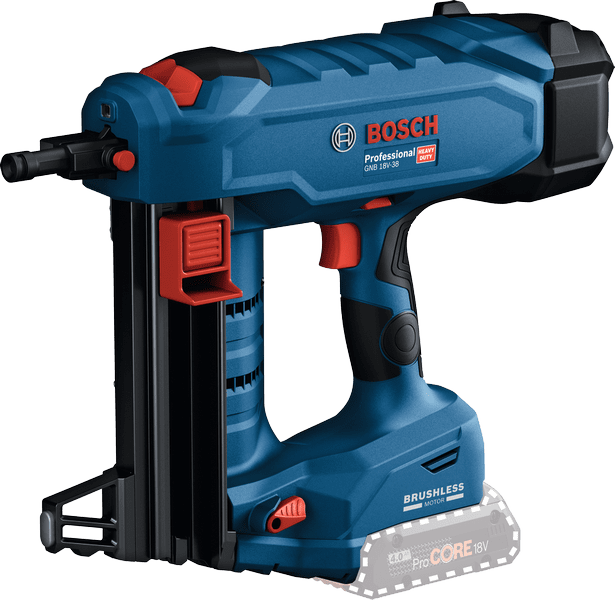 - The Bosch GNB 18V‑38 Professional is a high‑performance cordless direct‑fastening tool designed for fastening steel tracks, channels or fixings into concrete and steel with ease. Fueled by Bosch’s 18 V system and advanced BITURBO Brushless motor, it delivers strong and reliable performance without the need for gas or compressors. Its compact weight (around 4.1 kg excl. battery) combined with its nail‑capacity and magazine design make it ideal for skilled trades working in demanding environments.