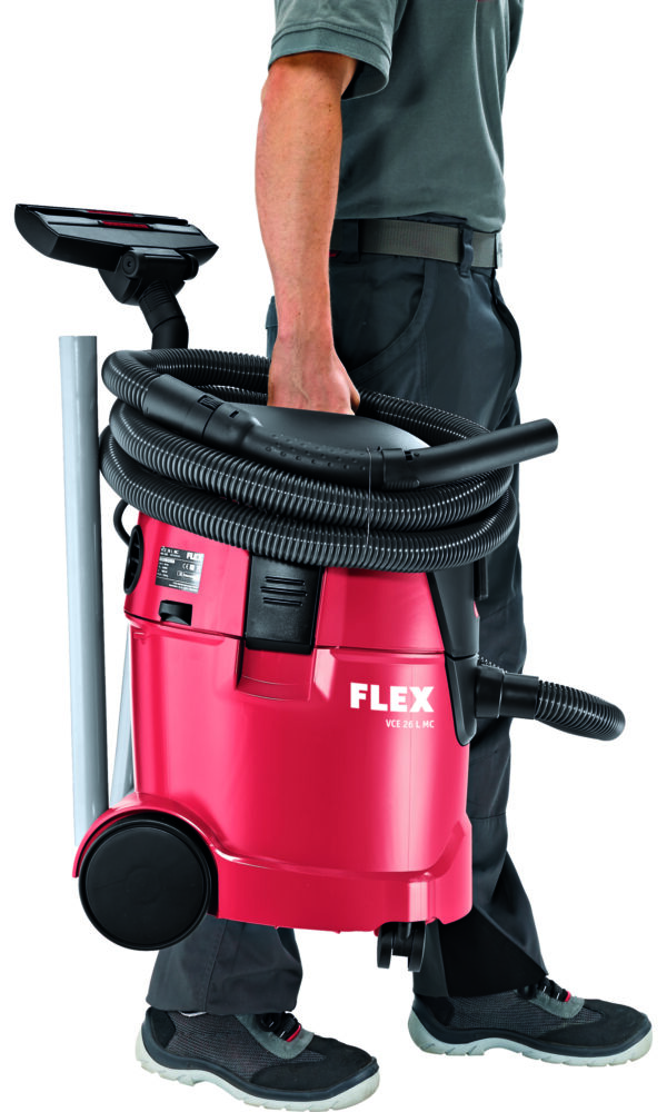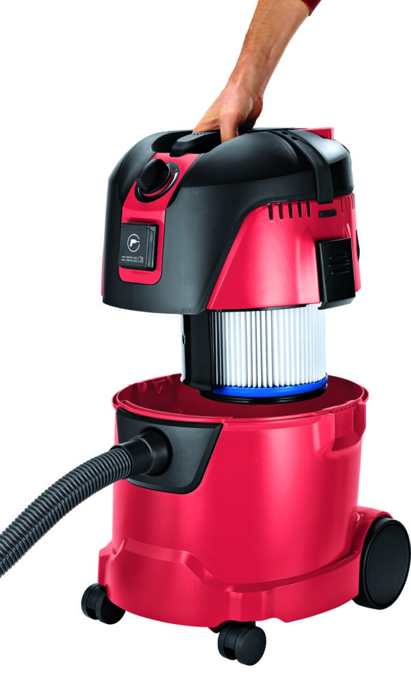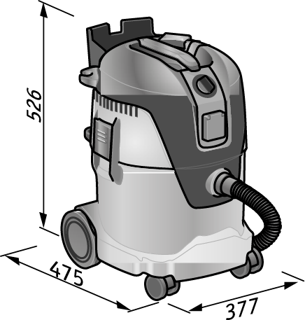 Equipped with large wheels and two swivel guide rollers - Suitable for increased stress commercially (according EN 60335-2-69). Ideal for cleaning work in offices, storage rooms, workshops and vehicles. Smaller electric power tools, e.g. palm sander, delta sander, random-orbit sander, jigsaws, are primarily used for extraction work.